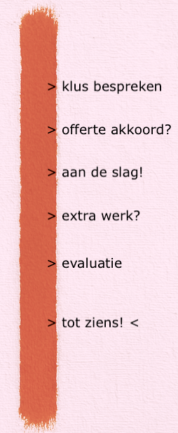 Ik kom eerst bij u langs om uw klus te bespreken en alle informatie te verzamelen. Daarna ontvangt u, kosteloos en vrijblijvend, een offerte.